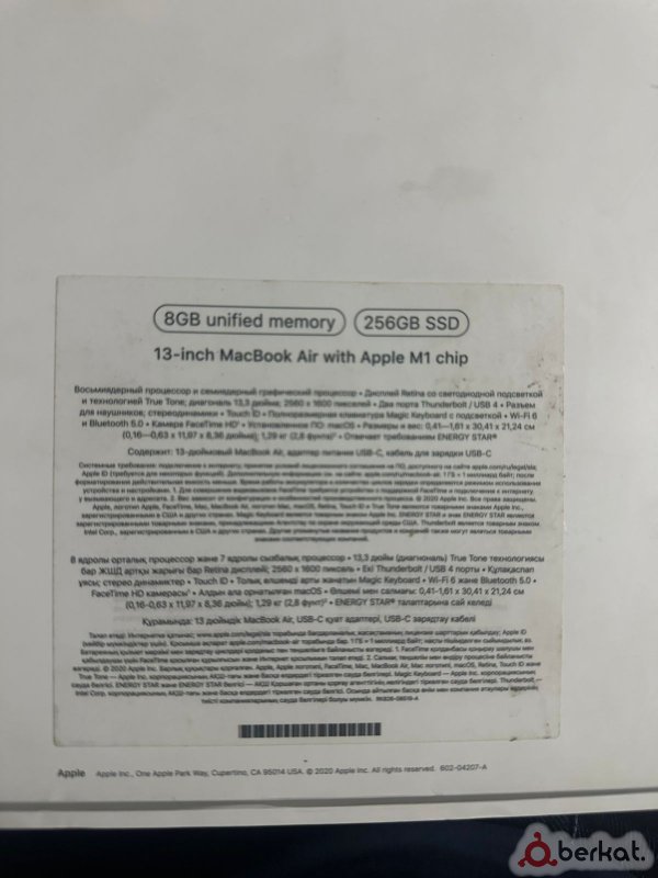 Продам мак бук айр на м2 256 гб, состояние как у нового, весь комплект коробка, блок и шнур