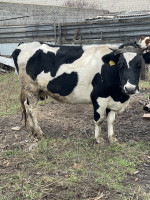 Продается дойная корова 4-5 лет, черно пестрая мясо молочная порода, в середине января должна отелиться в3-й раз, до сих пор давала 20л молока, теленки были породистые, не местная порода цена95т, просто так не беспокоить, желательно писать на ватсапп