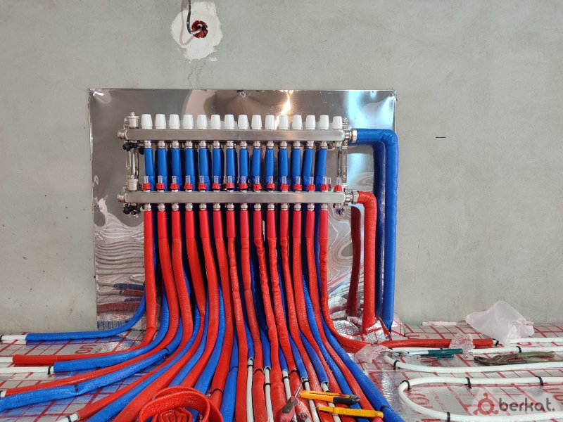 Укладка теплого пола, укладка утеплителя из пеноплекса, пленки без труб / с трубками, подключение контуров к коллектору, установка сборка коллектора