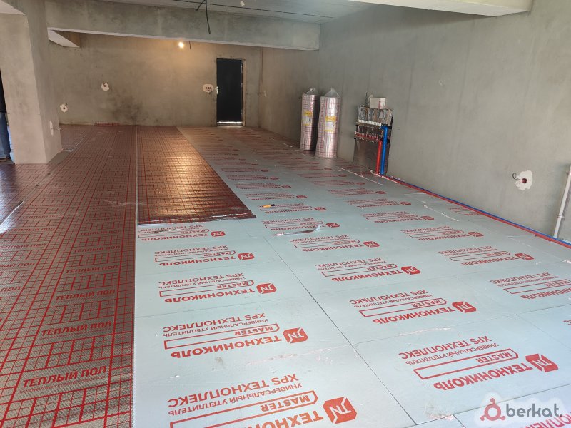 Укладка теплого пола, укладка утеплителя из пеноплекса, пленки без труб / с трубками, подключение контуров к коллектору, установка сборка коллектора